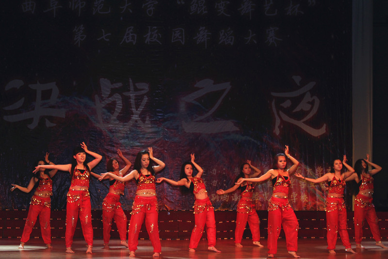 经过初赛、复赛的激烈角逐,共有十组选手过关斩将进入最终的决战之夜。玖月奇迹、金巧巧、乔任梁、玄子、白凯南、杨雪、罗中旭、卓君、翟孝伟等众明星的祝福视频拉开了舞蹈大赛决赛的帷幕。本次大赛除了沿袭往届传统之外,更是力求在各个方面创新突破。在舞种方面,除了以往常见的民舞、现代舞、古典舞、拉丁、街舞之外,芭蕾舞、肚皮舞等舞种也首次登上了大活的舞台。在舞蹈编排方面,选手们更是将故事情节、热门话题加入到舞蹈元素中来,CF舞团改编自《爸爸去哪儿》的舞蹈《Daddy,我们跳POPING吧》以其轻松幽默的舞蹈风格,新颖独特的创意编排,获得了阵阵掌声。来自教师教育学院的学前教育代表队的《中国妈妈》通过他们生动的肢体语言为我们讲述了抗战时期感人至深的亲情故事,歌颂了母爱的伟大无私,将比赛推至高潮。7号选手田娜以一首《时间都去哪了》为依托,在父亲节来临之际表达了对爸爸浓浓的爱意。