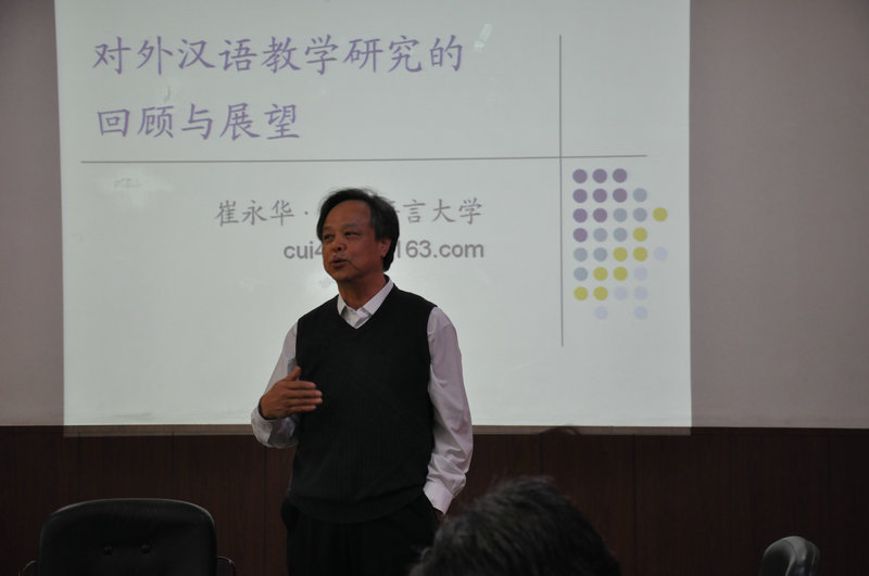 崔永华教授从对外汉语的主要研究领域出发,为大家详细介绍了对外汉语专业所涉及的学科理论研究、教学理论研究、汉语习得与认知研究等多方面的内容,一一列举了对外汉语教学在众多领域所取得的标志性成果,肯定了对外汉语研究三十年所取得的成就和意义,进而提出了对外汉语理论创新、汉语国际推广的理念,明确了今后对外汉语研究的主要问题,对未来对外汉语研究做出美好展望。