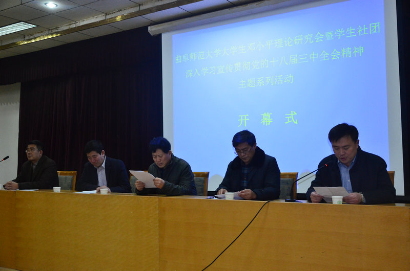 12月18日晚,由大学生社团联合会主办、大学生邓小平理论研究会承办的深入学习宣传贯彻十八届三中全会精神主题系列活动启动。党委宣传部部长宋德昭、马克思主义学院院长张立兴、学生工作处处长杨永明、团委书记屈跃宽等出席了本次活动的启动仪式。