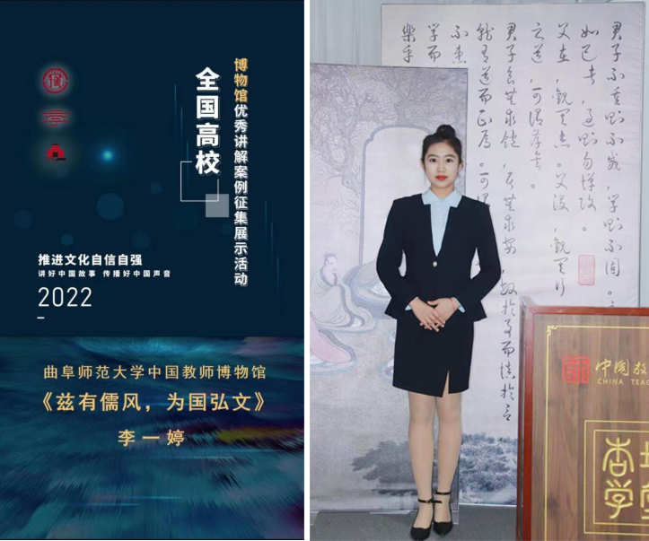 教师博物馆参赛讲解案例《兹有儒风,为国弘文》由教师博物馆志愿讲解员、文学院学生李一婷进行示范讲解,通过讲述教师博物馆现存的不同时期、形态、材质各异的孔子像,体现儒家文化的不断对外传播、交流、融合,结合中国传统技艺面塑,在博物馆六艺体验区,与尼日利亚青年郑泽伟共同制作心中的孔子形象,展现不同国家青年之间的文化交流与时代担当。
