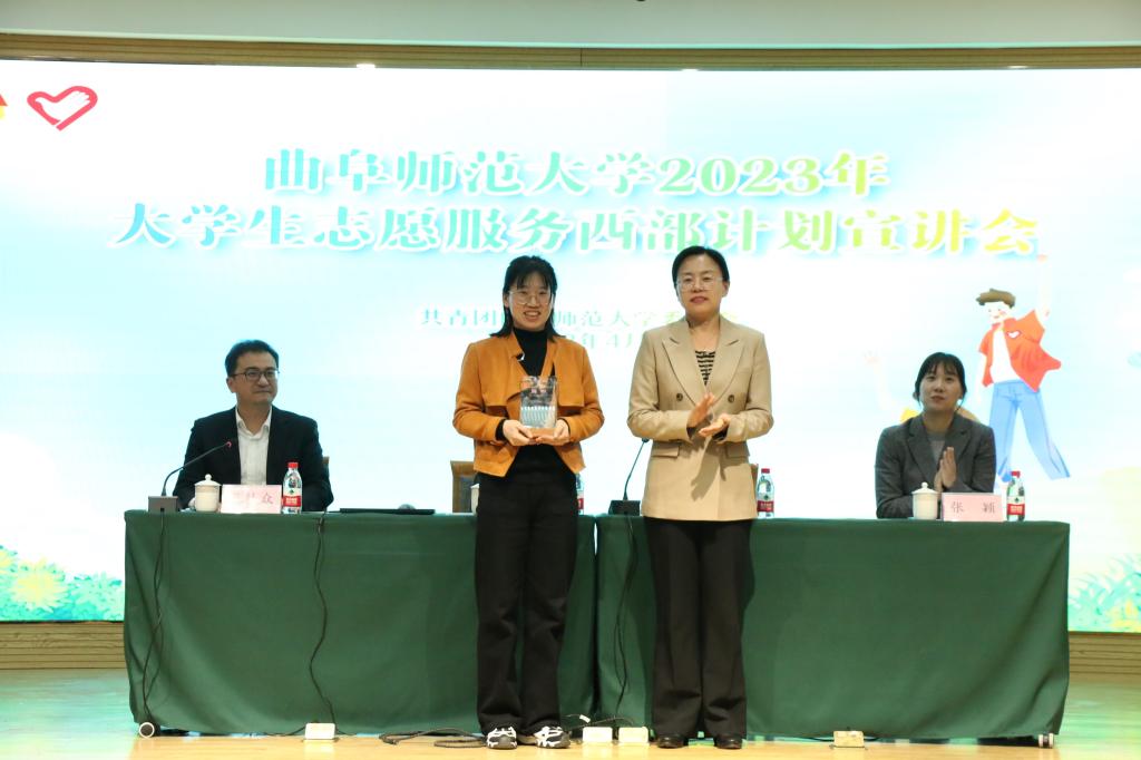 曲阜师大团委讯 为加深青年学子对大学生志愿服务西部计划的了解,鼓励同学们积极投身西部建设,4月21日,开元足球_开元(中国)举办2023大学生志愿服务西部计划宣讲会。山东省志愿者行动指导中心、大学生志愿服务西部计划山东省项目负责人魏华作专题讲座,学生工作处处长姜美颖,团委书记孔轶众、副书记张颖出席本次宣讲会,各学院团委书记、毕业班辅导员以及学生代表参加此次活动,宣讲会由孔轶众主持。