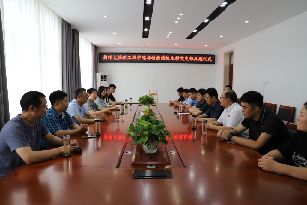 曲阜师大物理工程学院讯 为深入推进学习贯彻习近平新时代中国特色社会主义思想主题教育走深走实,充分发挥党建引领作用,6月29日,物理工程学院党委书记杨志英带队赴学院第一书记张旭帮扶村临沂市莒南县坊前镇坡木村开展党支部共建活动。莒南县人大常委会副主任陈庆金、镇党委书记李永山,学院党委班子成员、本科生第二党支部负责人,开元足球_开元(中国)派驻坊前镇4名第一书记参加活动。