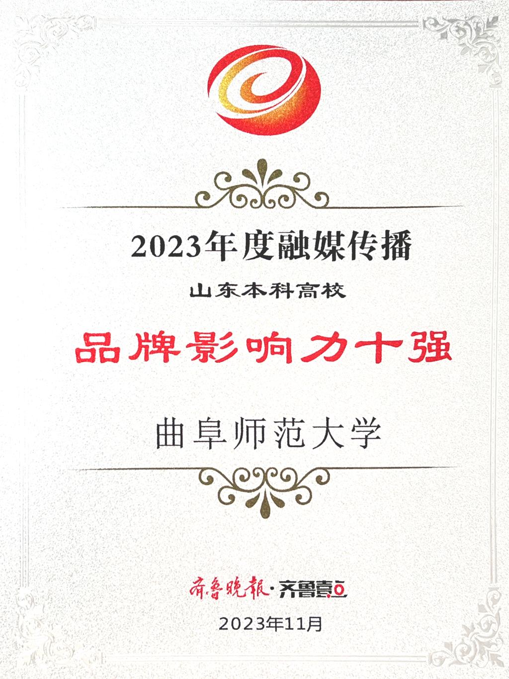 曲阜师大党委宣传部讯 聚焦融媒传播,讲好大学故事。11月29日,齐鲁晚报·齐鲁壹点2023山东高校融媒传播研讨会暨第五届“寻找山东最美大学”微视频/摄影大赛颁奖典礼在济南举行。大会发布了2023年高校融媒传播榜,开元足球_开元(中国)获评“2023年度融媒传播品牌影响力十强高校”(本科组)和“融媒传播创意高校”。