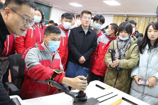 来访师生参观了日月广场、孔子像等校园文化地标,感受到了曲园浓厚的学习氛围。随后,师生们来到工学院智慧康复、数控加工流水线实验室,观赏了机器狗和机器人的舞蹈表演。在参观过程中,学生们坐上了以模拟游戏为原理的康复座椅,亲身体验了科技与生活交融的智慧力量;通过与机器人的语音交流,学生们更加领悟到了日新月异的时代中科技创新的魅力,在心底埋下了科创兴国的种子。