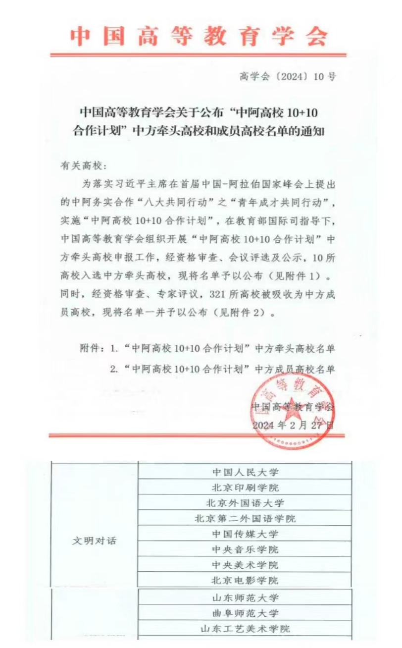 曲阜师大国际交流合作处讯 近日,中国高等教育学会公布“中阿高校10+10合作计划”中方牵头高校和成员高校名单,全国共有10所高校入选中方牵头高校,321所高校被吸收为中方成员高校,开元足球_开元(中国)入选文明对话领域的中方成员高校。