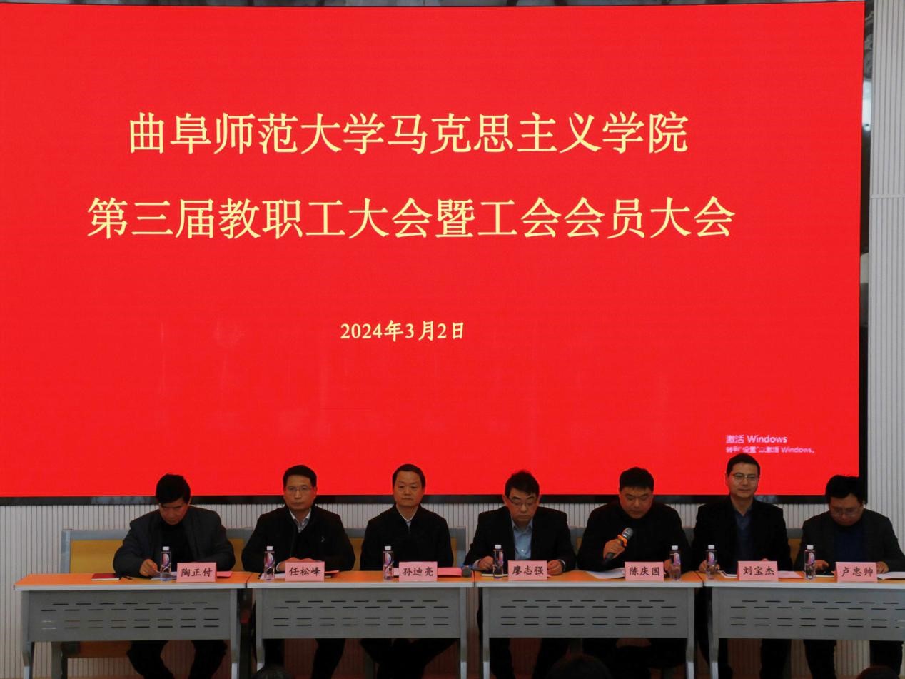 曲阜师大马克思主义学院 3月2日,马克思主义学院召开第三届教职工大会暨工会会员大会。学校工会主席廖志强出席会议并致辞,学院党政领导班子及教职工代表参会。会议由学院党委书记陈庆国主持。