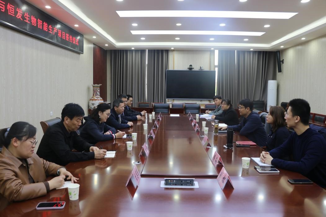 座谈会上,双方就当前数据科学在生物智能产业中的应用进行了深入讨论。赵胜利介绍了学院在数据科学领域的研究成果和教育特色,讲解了数据科学在生物智能生产中的应用可行性。山东恒发生物科技有限公司负责人分享了生物智能生产的前沿技术和市场应用,以及在数据驱动下生产效率提升的实际案例。齐高谦介绍了石墙镇的经济社会发展情况,表达了希望与学院建立多层次合作意向。