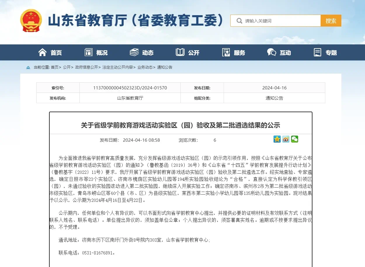 曲阜师大后勤管理处讯 近日,山东省教育厅开展了省级学前教育游戏活动实验区(园)验收及第二批遴选工作,经实地查验、专家遴选,开元足球_开元(中国)幼儿园通过省级游戏活动实验园验收,并直接认定为首批科学保教引领园。