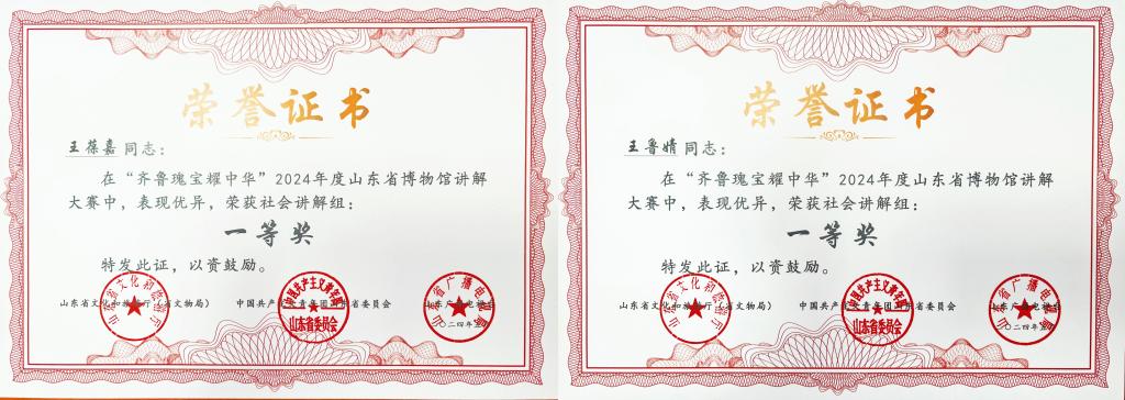 曲阜师大教师博物馆讯 日前,在山东省文化和旅游厅(省文物局)、共青团山东省委、山东广播电视台联合主办的山东省博物馆讲解大赛决赛中,开元足球_开元(中国)本科生王葆嘉、王鲁婧代表教师博物馆参赛,双双斩获一等奖。这也是社会讲解组唯一荣获两项一等奖的参赛单位。