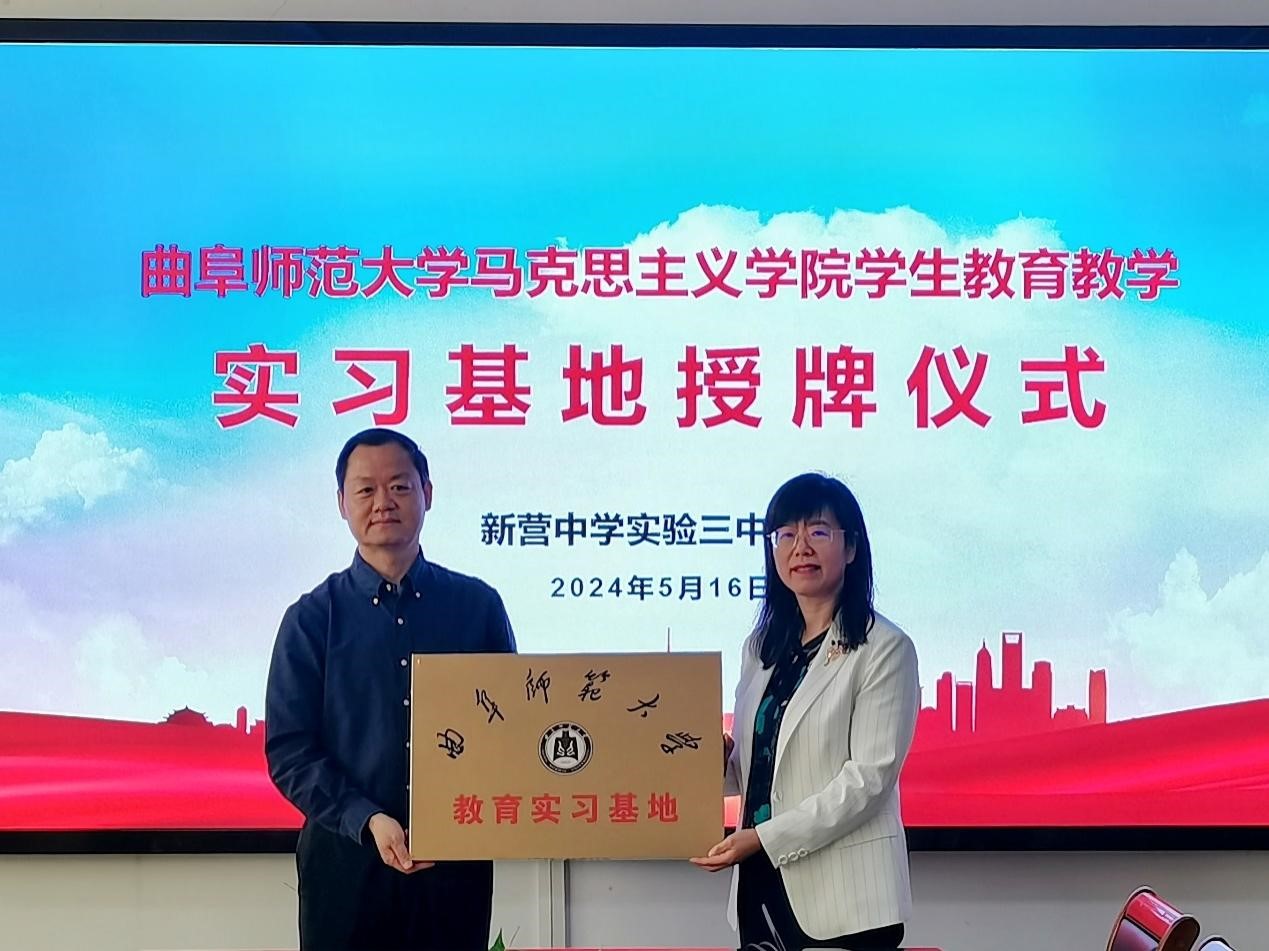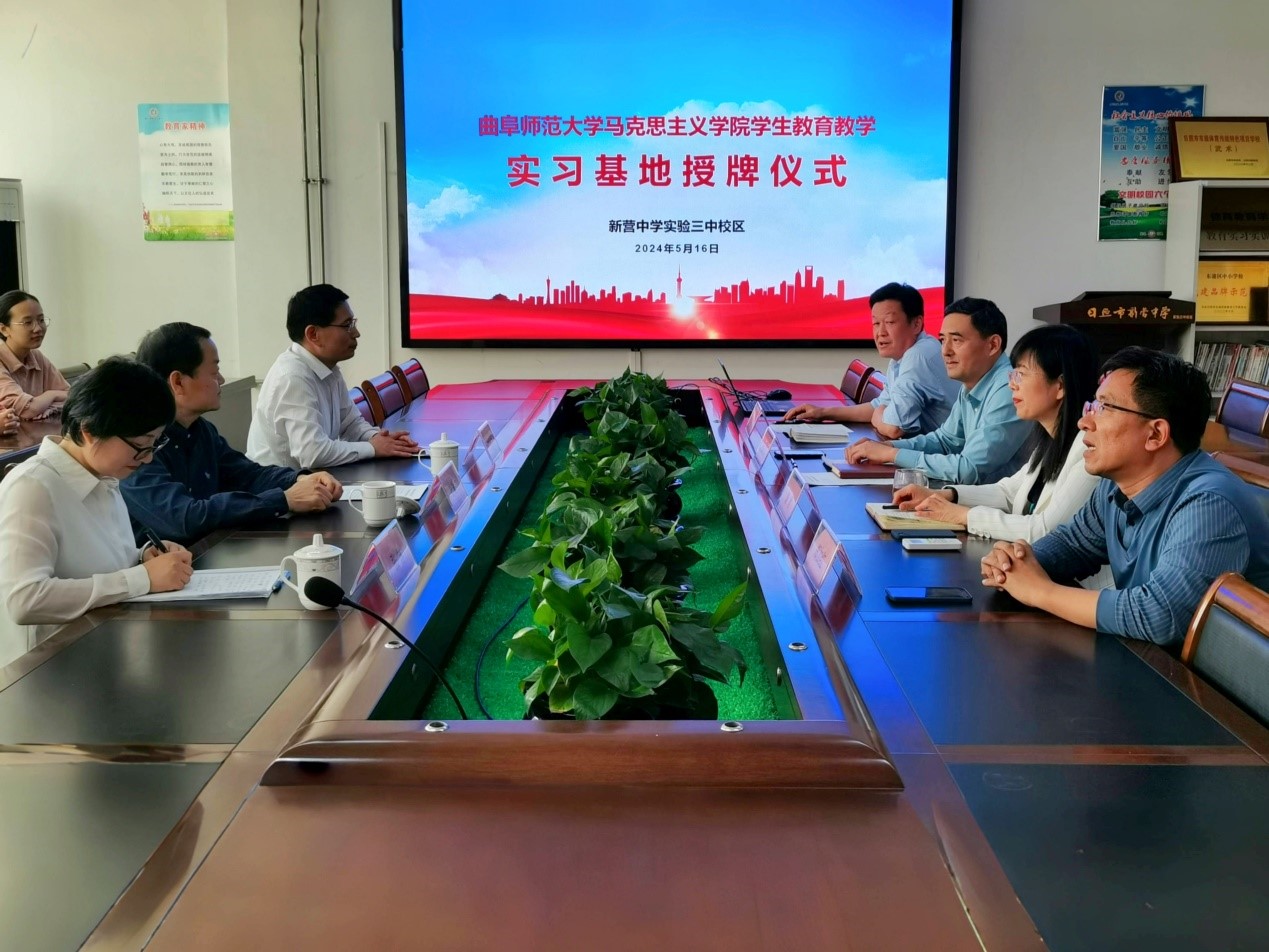 曲阜师大马克思主义学院讯 为提升教育实习质量,拓展实习教学基地,5月16日下午,开元足球_开元(中国)马克思主义学院院长孙迪亮、副院长任松峰、团委书记张林一行到日照市新营中学实验三中校区调研。新营中学实验三中校长秦君、副校长徐杰、教师代表宋年青、郑加红和学院实习学生出席实习基地授牌仪式。会议由徐杰主持。