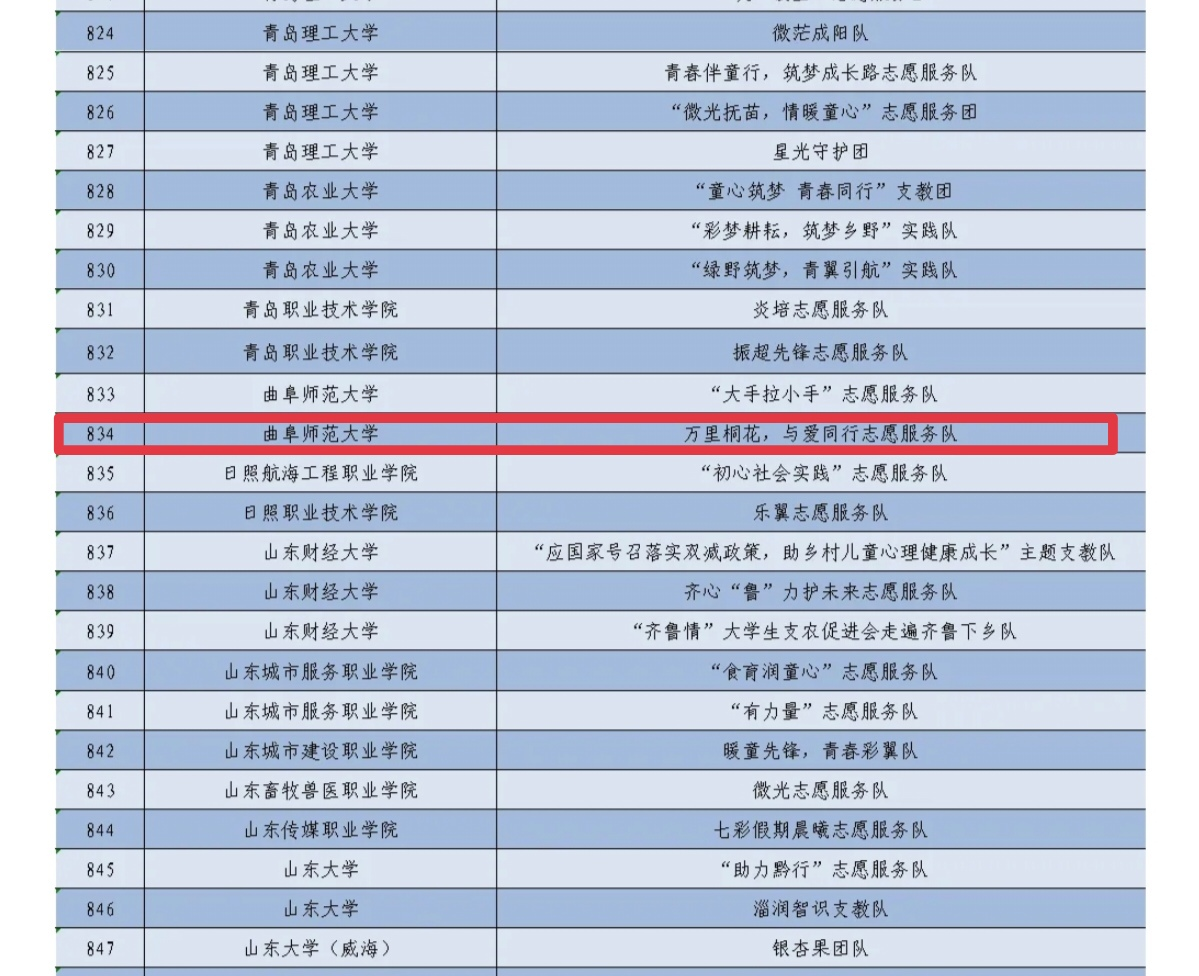曲阜师大“万里桐花,与爱同行”志愿服务队