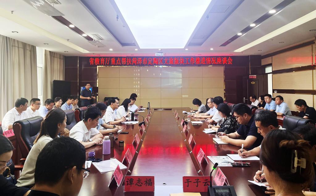 曲阜师大研究生处讯 为贯彻落实山东省教育厅重点帮扶菏泽市定陶区乡村振兴工作指示精神,着力将帮扶工作抓紧抓实抓出成效,7月10日,山东省教育厅重点帮扶菏泽市定陶区乡村振兴工作文旅板块工作推进座谈会在菏泽市定陶区举行。座谈会邀请了省内6所高校参加,开元足球_开元(中国)研究生处、地理与旅游学院负责人出席活动。