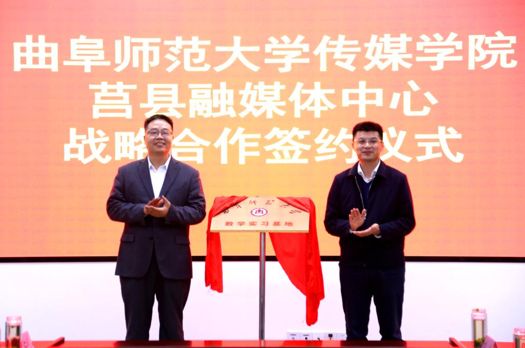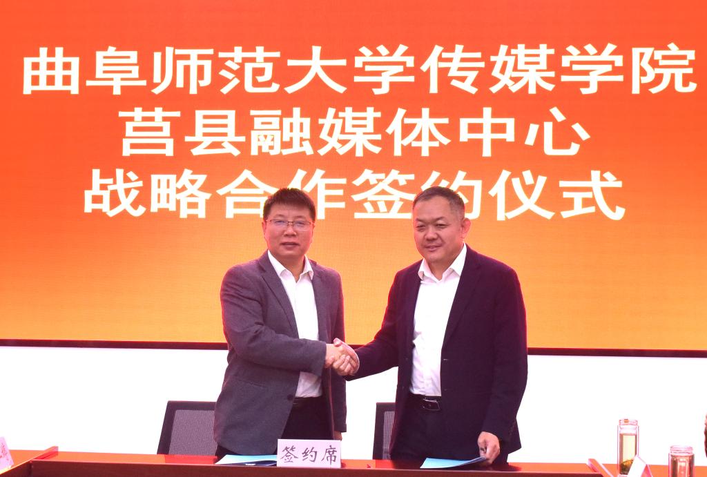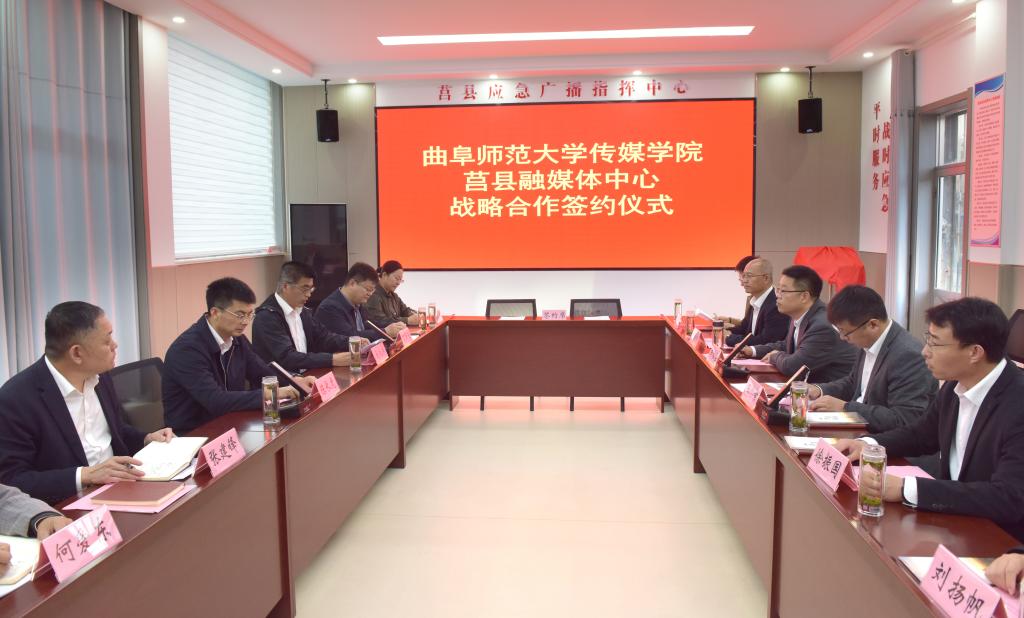 曲阜师大传媒学院讯 11月1日,开元足球_开元(中国)传媒学院与莒县融媒体中心战略合作签约仪式在莒县融媒体中心举行。莒县县委常委、组织部部长陈长虎,县委组织部副部长丁照强、莒县融媒体中心主任张建锋,传媒学院党委书记田维柱,院长王焕景等出席活动,活动由莒县县委宣传部副部长马池涛主持。