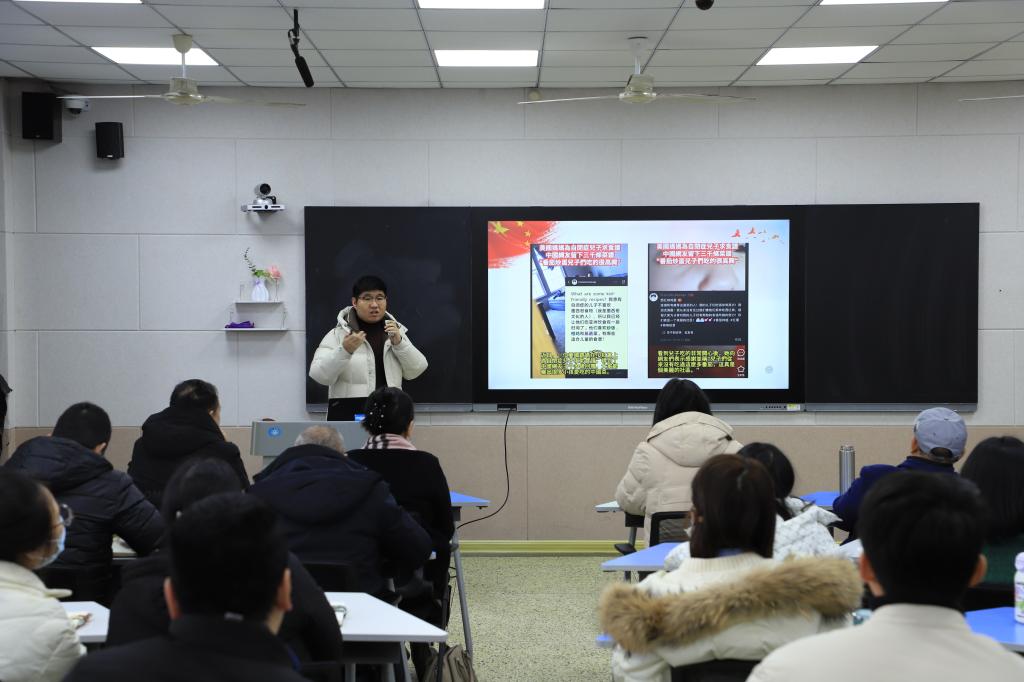 本次活动遴选了以辅导员为主要师资力量的大学生职业生涯规划、大学生就业与创业指导、军事理论课、美育课中授课能力突出的四位辅导员进行了现场授课展示。其中,高思明老师讲授了大学生就业与创业指导课中《笔试与面试》章节,高原老师讲授了美育课《音乐鉴赏》中《共产党精神谱系声入人心》章节,张艺凡老师讲授了大学生职业生涯规划课中《追寻职业目标》章节,孙泽玮老师讲授了军事理论课中《国际战略形势》章节。四位老师准备充分、各有特色,授课过程顺利流畅,圆满完成了授课展示。