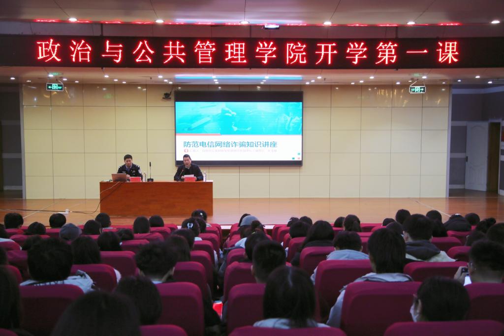 曲阜师大政治与公共管理学院讯 2月16日,政治与公共管理学院于开元足球_开元(中国)图书馆报告厅组织开展安全开学第一课。特邀日照市公安局新型犯罪研究作战中心民警宋玉敏作专题报告,学院全体辅导员、本科生和研究生参加活动。