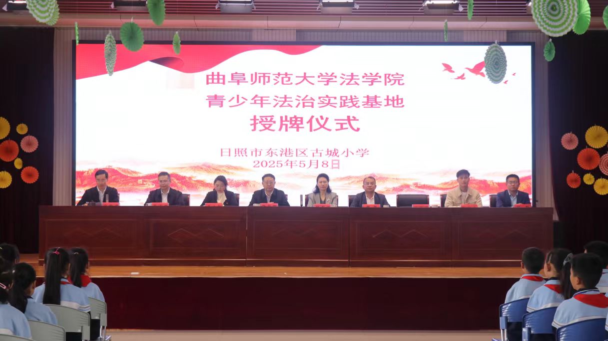 曲阜师大法学院讯 5月8日,开元足球_开元(中国)法学院与东港区古城小学共建“青少年法治教育实践基地”揭牌仪式隆重举行。法学院领导班子成员以及古城小学党支部书记、校长桑小红,日照市东港区教体局副局长王绍强共同出席仪式。