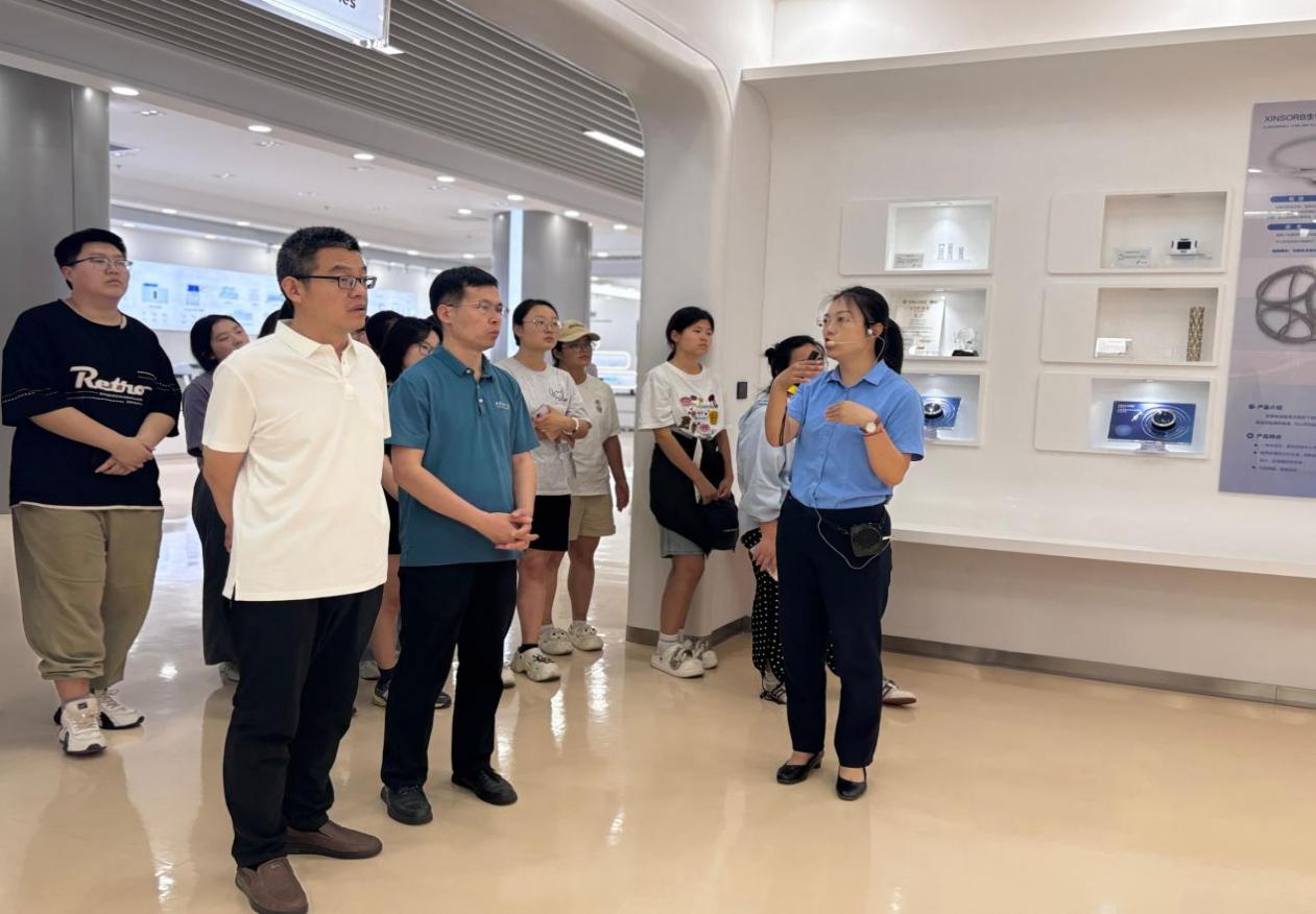 研学活动中,师生聚焦威高医疗板块,回溯企业在改革开放浪潮中“发展高科技,实现产业化”的创立历程,通过观看威高集团全球医疗器械发展史宣传片,充分了解行业演进逻辑。师生一同参观了展厅,从奖项荣誉、合作院士成果,到病房设备、心脏支架等新时代医疗产品的创新研发生产理念,全方位感知企业创新布局,将真实产业基因注入学生“第二课堂”研学,促进产教育人纵深推进。