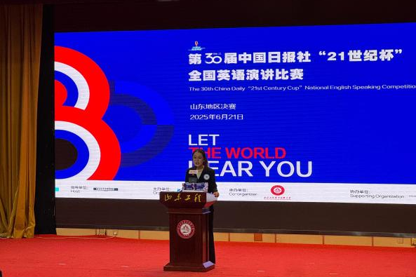 翻译学院讯 6月21日,第30届中国日报社“21世纪杯”全国英语演讲比赛山东地区决赛圆满落幕。此次比赛吸引了来自山东省内多所高校的43名选手同台竞技。曲阜师大翻译学院2022级商英专业赵伊朵同学在张巍老师指导下获山东省赛区一等奖,晋级全国赛。