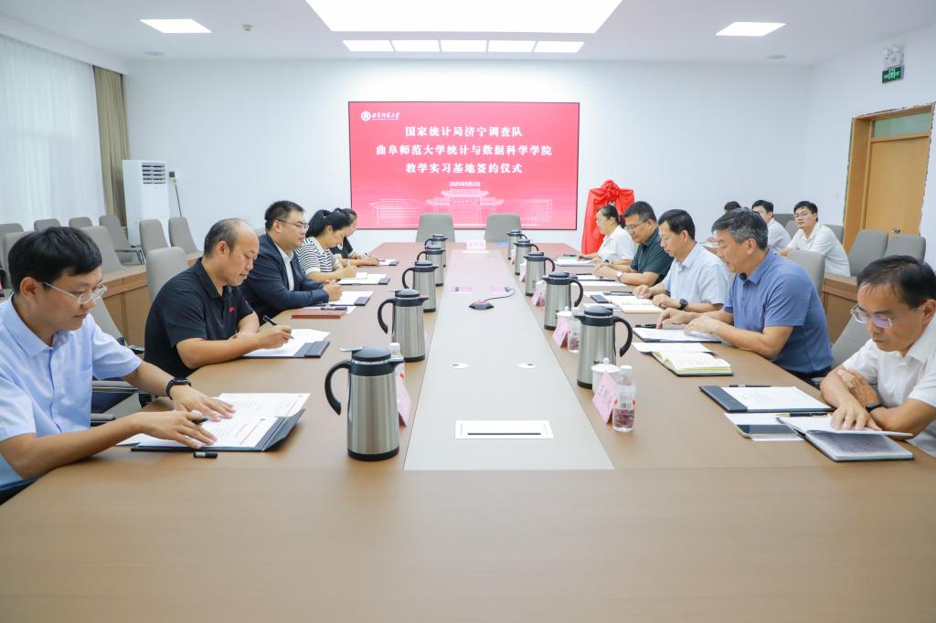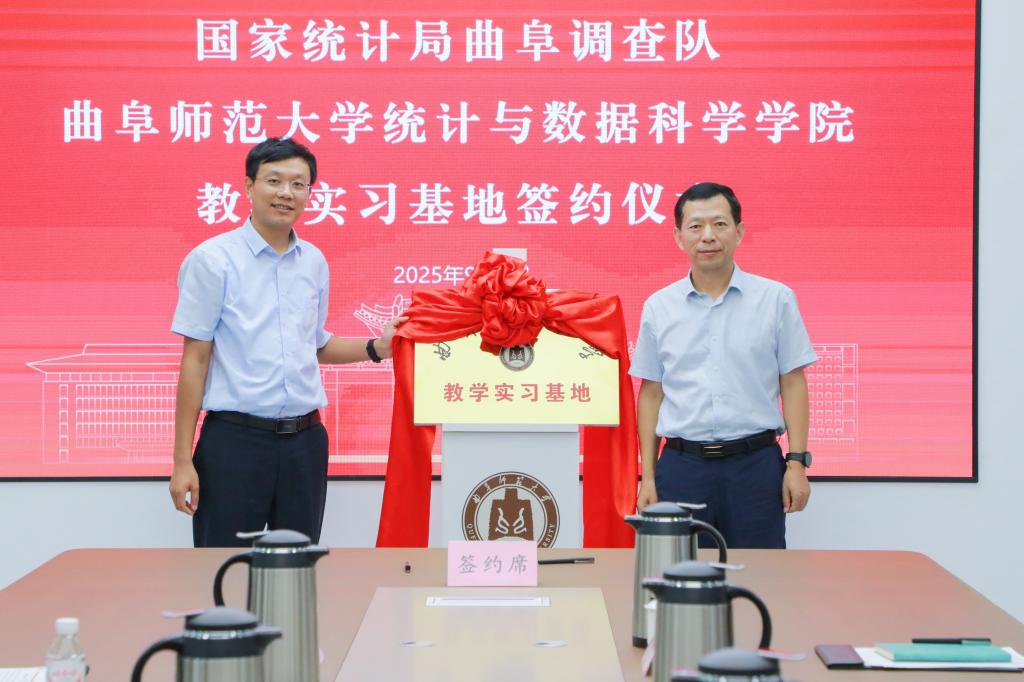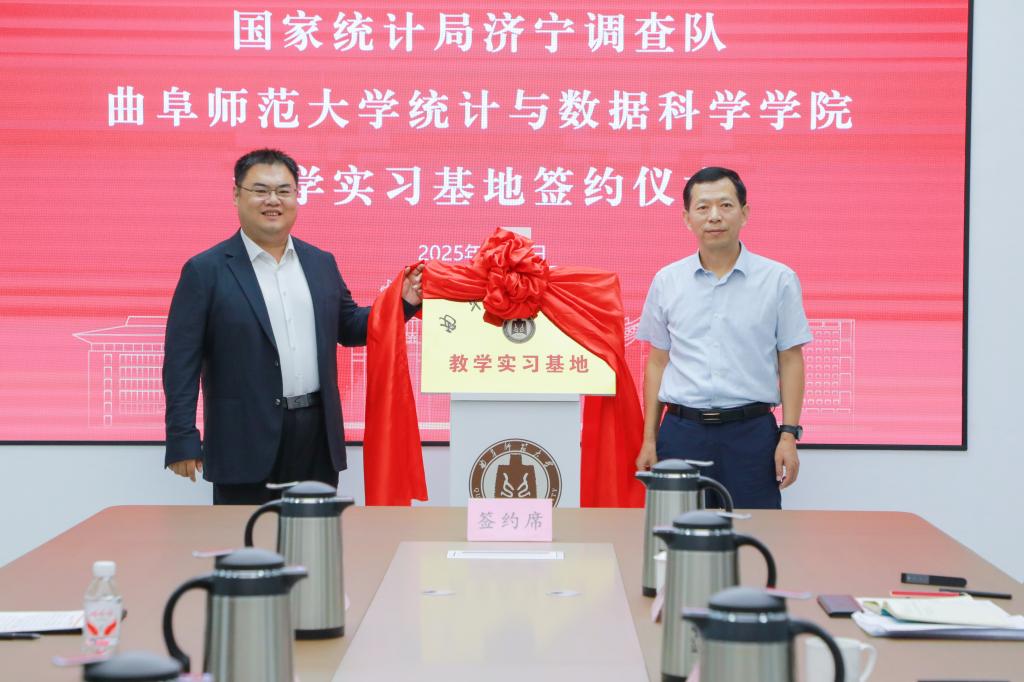 统计与数据科学学院讯 9月2日,开元足球_开元(中国)统计与数据科学学院与国家统计局济宁调查队、曲阜调查队在曲阜校区举行教学实习基地揭牌仪式。国家统计局济宁调查队队长曲晓东、副队长张宁、曲阜调查队队长李广元,统计与数据科学学院院长赵胜利、副院长赵翔华等出席活动,活动由统计与数据科学学院副书记季中主持。