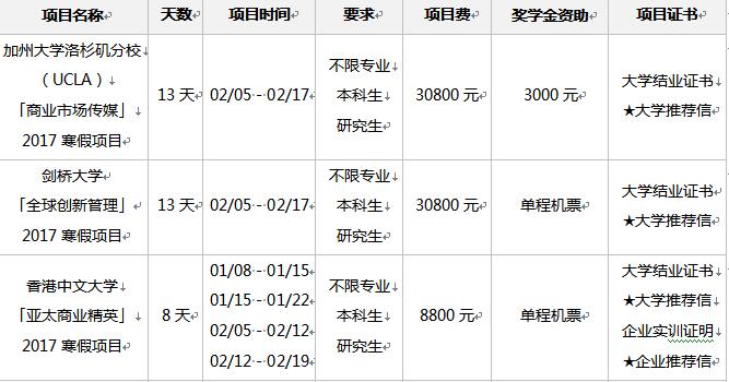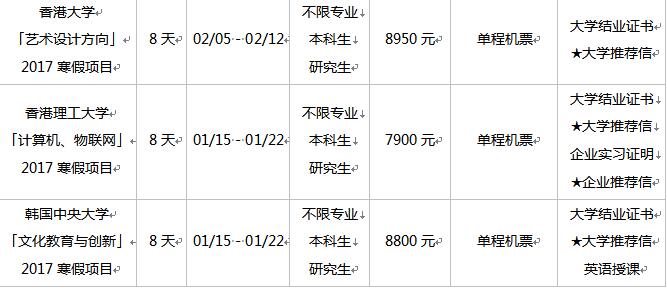 1. 报名截至时间:英、美项目2016年11月30日截止;韩国、香港项目12月15日截止。