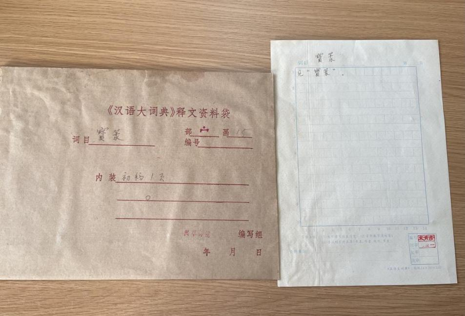 赵传仁、宋芳彦:自1976—1986年,我们共计工作了十年。前一年半的时间,我们的主要工作是收集整理资料和收词,当时没有电脑等现代化工具,资料收集较为困难,我们的主要资料来源有两个方面,一个是旧有辞书,如我国旧《辞海》《词源》《康熙字典》等,还有日本出版的《大汉和词典》和我国台湾省出版的《中文大辞典》等,在阅读的同时我们采取了制作资料卡片的方式来收集词条,同时,编纂处选取了我国经、史、子、集等古籍图书一千余种,从这些资料中收集整理有用的资料并做出卡片,到1979年积累资料基本完成时,我们已累计制作了12余万张的卡片……在之后的时间我们的工作重心主要是编写词条,我们所编写“冫”部所有条目1221条,印刷在原书原版第一册中,“子”部词条1990条,印刷在原书原版第二册中,“宀”部词条6806条,印刷在原书原版第三册中,总计10019条,117.4万字。又为临沂词典组审稿2271条。