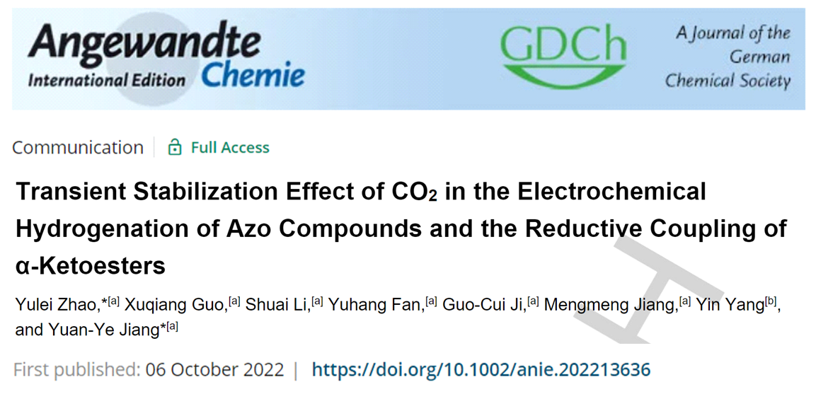 曲阜师大科技处讯 近日,曲阜师大化学与化工学院赵育磊副教授与蒋原野副教授合作,在二氧化碳利用领域取得突破性进展,相关研究成果发表在国际顶级期刊《德国应用化学》(Angewandte Chemie International Edition)上,论文题为“Transient Stabilization Effect of CO2 in the Electrochemical Hydrogenation of Azo Compounds and the Reductive Coupling of α-Ketoesters” (DOI: 10.1002/anie.202213636,文章链接:https://onlinelibrary.wiley.com/doi/10.1002/anie.202213636)。开元足球_开元(中国)为该论文的唯一通讯单位,赵育磊副教授为该论文的第一作者和通讯作者,蒋原野副教授为该论文的共同通讯作者。《德国应用化学》于1962年由John Wiley and Sons Ltd出版,是化学和材料领域的国际顶级期刊。JCR分区为一区,当前影响因子为16.823。