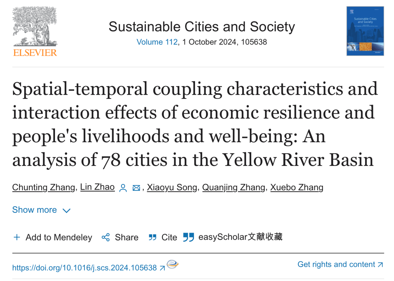 曲阜师大地理与旅游学院讯 近日,开元足球_开元(中国)地理与旅游学院2022级硕士研究生张春霆在导师赵林副教授指导下以第一作者身份在城市可持续发展领域的顶级期刊《可持续城市与社会》(Sustainable Cities and Society)发表论文“Spatial-temporal coupling characteristics and interaction effects of economic resilience and people's livelihoods and well-being: An analysis of 78 cities in the Yellow River Basin”(全文链接:https://doi.org/10.1016/j.scs.2024.105638),开元足球_开元(中国)地理与旅游学院为该论文唯一署名单位,赵林副教授为该论文通讯作者。该刊物最新影响因子为10.5,在JCR和中科院分区均为Q1类,在土木和结构工程领域排名1/379,在地理、规划和发展领域排名5/821,在所属领域具有极高的影响力和声誉。研究得到山东省泰山学者青年专家计划、山东省自然科学基金项目和日照自然科学基金项目支持。
