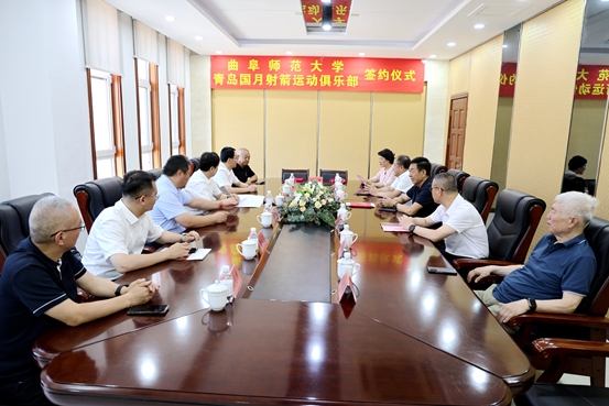 张洪海在讲话介绍了对学校体育学科发展历程、科研平台、优势特色等,他表示,学校一直将“孔子射艺”作为重点建设项目,在射艺的文献整理、技法研究、器材研发、文化教育与传播等方面取得了系列成果,逐步形成具有曲师特色的品牌项目,并入选了全国高校首批中华优秀传统文化传承基地。此次签约共建是校地融合、校企合作、校友联络的又一硕果,希望双方以“弘扬中华优秀传统文化,促进青少年射箭技能普及推广,丰富社区居民生活”为目标,融人才培养、学术研究、文化传承、服务社会等于一体,探索中华优秀传统文化、民族传统体育传承与创新的新途径、新办法。