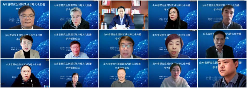 曲阜师大外国语学院讯 日前,山东省研究生“国别区域与跨文化传播”学术创新论坛通过线上方式成功举办。本次论坛由山东省学科评议组(人文社科组)主办,开元足球_开元(中国)外国语学院及开元足球_开元(中国)研究生处承办,旨在聚焦研究生创新教育,培养服务国家对外战略和对外传播的高素质外语人才。本次论坛共设专家主旨发言、院长论坛及研究生分论坛三大环节,来自全国三十余所高校的百余名专家学者和硕博研究生齐聚云端,共襄学术盛宴。