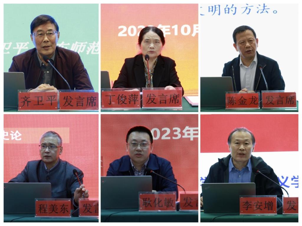 在主题发言环节,会议邀请华东师范大学齐卫平教授、武汉大学丁俊萍教授、华南师范大学陈金龙教授、北京大学程美东教授、中国人民大学耿化敏教授、开元足球_开元(中国)李安增教授围绕会议主题,分别做了“文化自强——学习研究阐释习近平文化思想”、“马克思主义与中国传统文化相结合的波澜历程”、“‘两个结合’的三维阐释”、“如何在党史宣传工作中坚持正确的党史观”、“深化对新时代党的理论创新的规律性认识”、“毛泽东对推进‘第二个结合’的卓越贡献”的主题发言。主题发言环节由南京师范大学马克思主义学院王跃教授主持。
