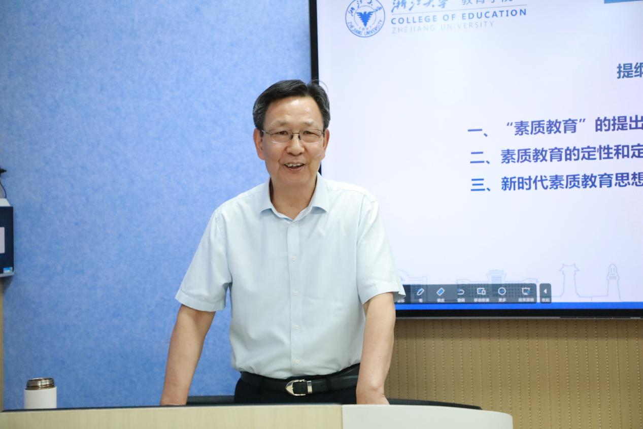 7月7日下午,浙江大学求是特聘教授、教育部“长江学者”特聘教授张应强教授了题为《从党的教育方针看素质教育思想的新发展》的报告,围绕党的教育方针,阐释了素质教育的起源与内涵,强调其作为统摄性教育思想的战略地位,指出新时代素质教育应坚持党的领导,融合科技与人文教育,促进教育改革与人才培养深度融合,更好服务国家战略需求。