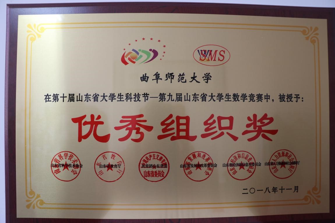 我校荣获第九届山东省大学生数学竞赛优秀组织奖