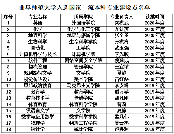 曲阜师大10个专业入选2020年度国家级一流本科专业建设点