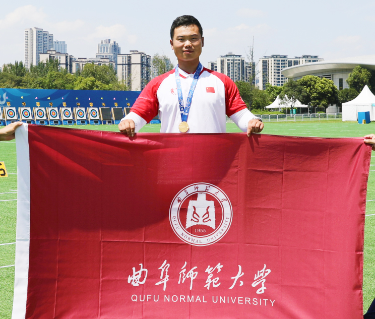 摘金!曲阜师大学生王世坤获成都大运会射箭男子复合弓团体赛金牌