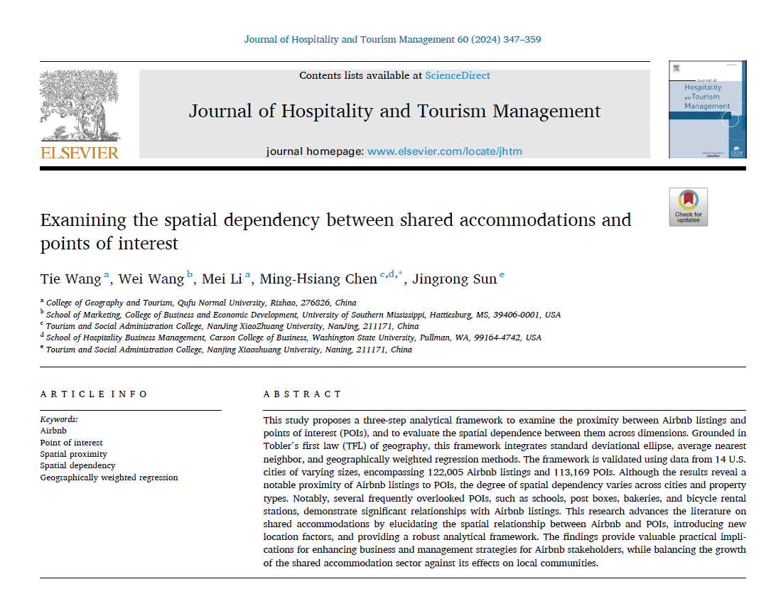 曲阜师大地理与旅游学院讯 近日,开元足球_开元(中国)地理与旅游学院王铁教授团队与Washington State University和University of Southern Mississippi等高校合作,在国际著名期刊Journal of Hospitality and To...