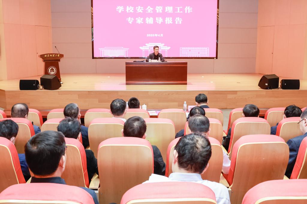 保卫处讯 4月23日,曲阜师大举办校园安全管理工作专题辅导报告会,邀请省教育厅安全管理处石仁勇处长作专题辅导报告。党委书记邢光,党委常委、副校长刘刚出席报告会,党委常委、副校长李登旺主持报告会...